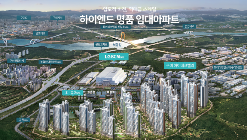 구미 산동 하이테크밸리 내 대규모 공공지원 민간임대 아파트 ‘신확장 대광로제비앙 메가시티’가 4월 17일 견본주택을 열고 본격적인 청약 접수에 돌입합니다.