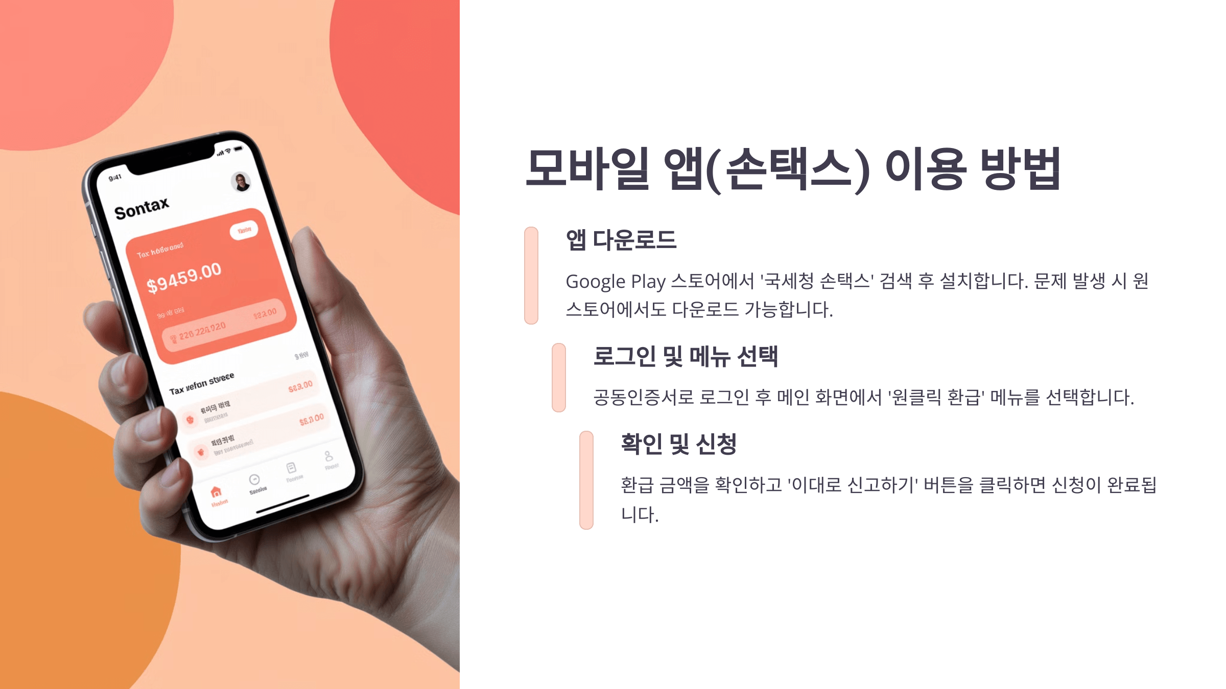- 안드로이드: Google Play 스토어에서 ‘국세청 손택스’ 검색