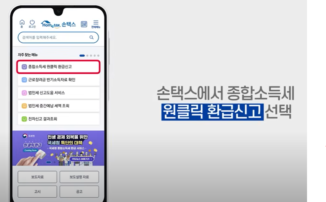 국세청 원클릭환급서비스 신청 직장인,배달라이더,학원강사,고령자