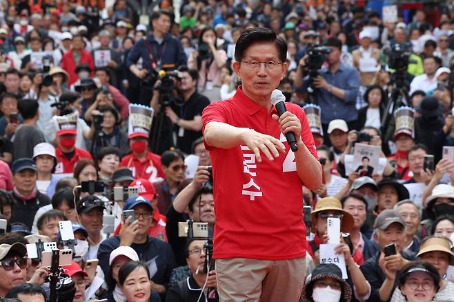 김문수 후보는 경북 유세 일정을 마무리하며 칠곡 왜관에서 대규모 거리 유세도 벌였습니다. 이 자리에서 김 후보는 “이번 대선은 자유대한민국의 방향을 결정짓는 중대한 기로”라며, “TK(대구·경북)에서부터 다시 희망의 불씨를 피우겠다”고 강조했습니다.
