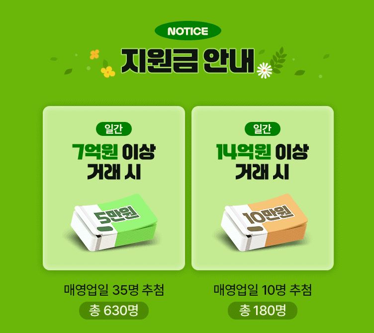 - 예: 30억 원 이상 거래 시 최대 300만 원 지원금 지급