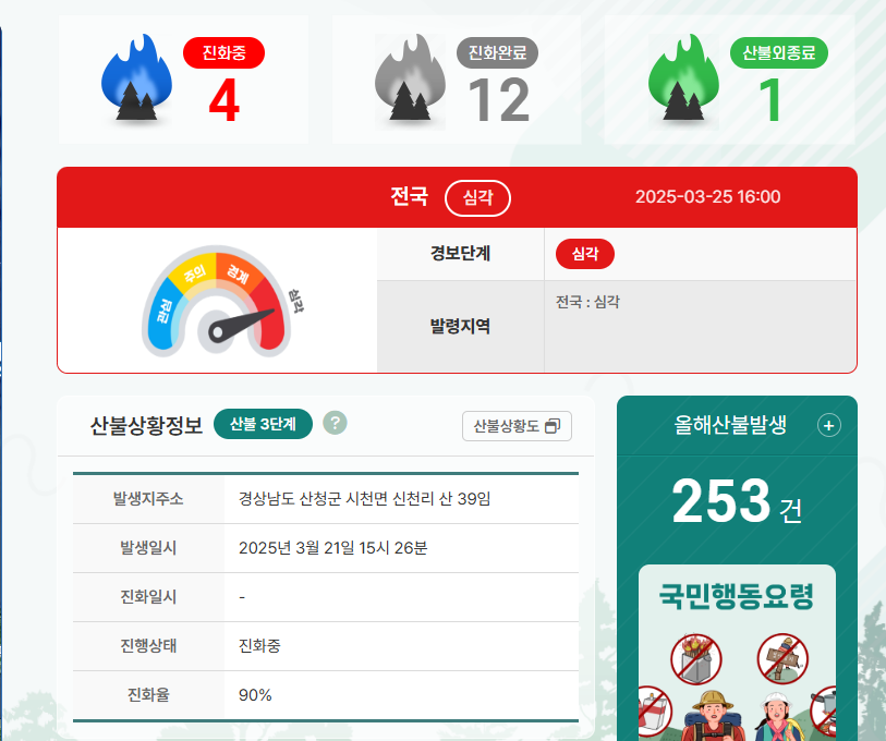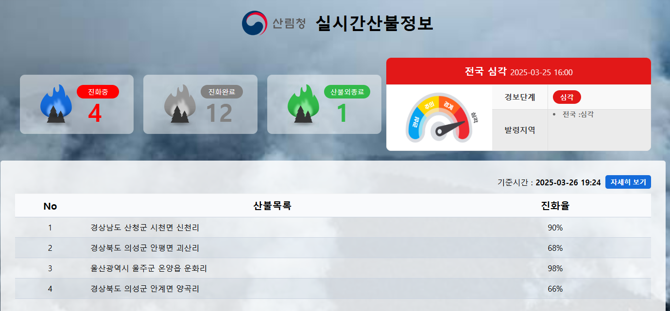 - 현재 KBS 등 국가 재난방송을 통해 산불 정보 제공 중