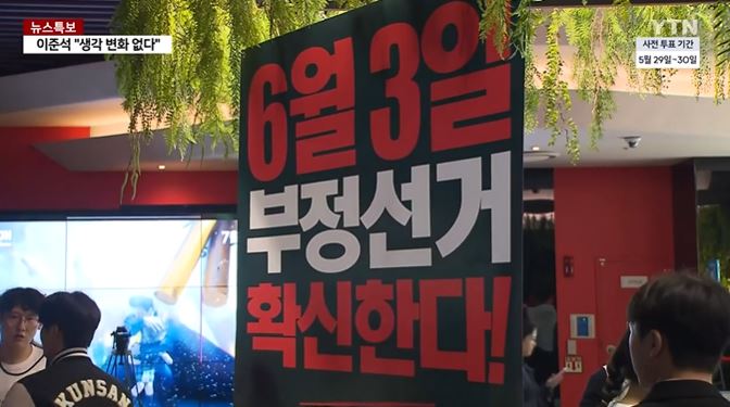 🗣️ 황 후보: “이번에도 부정선거가 있어서 지면 아무 의미 없다. 그래서 국민의힘도 떠났다.”