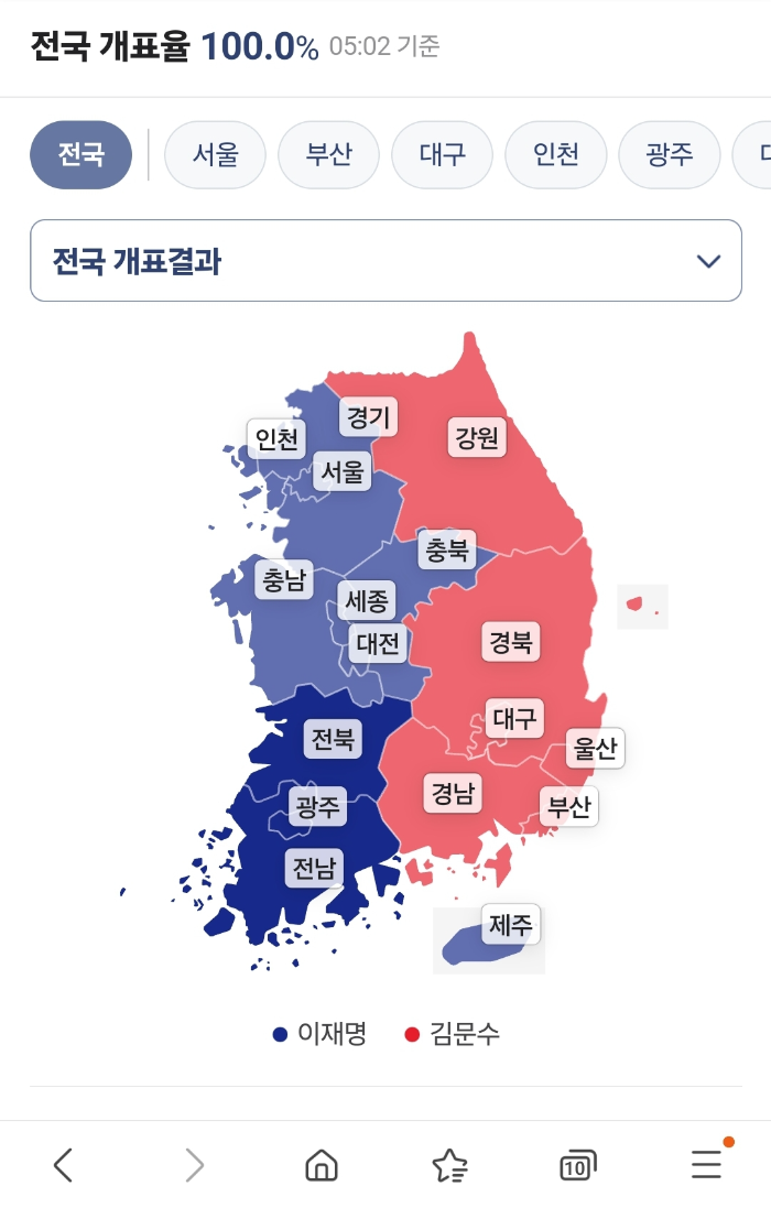 ▶️ 호남·수도권·충청은 이재명 우세