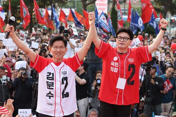 정치권 일각에서는 한동훈의 등장에 대해 차기 보수 리더십의 흐름이 김문수 쪽으로 기울고 있음을 방증한다고 해석합니다.